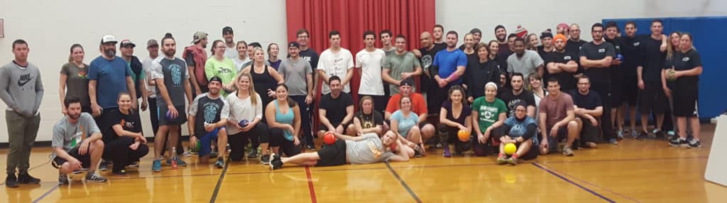 We play Wednesday nights in Yarmouth at DY Intermediate School, where over 100 adults come together to have fun, meet new people, and sneak in a workout without even realizing it. Each night you’ll play two 20-minute matches, squeezing in rapid-fire games—sometimes up to 18 in a match. Every game starts with 7 players on each side, three balls per team, and the rush of all 12 players diving into the action. When the last player on one team is out, the other side takes the win, lines back up, and does it again until time runs out. Most wins takes the match.